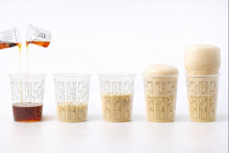 Una miscelazione efficace è essenziale per garantire una reazione uniforme, una densità stabile e un’espansione controllata.