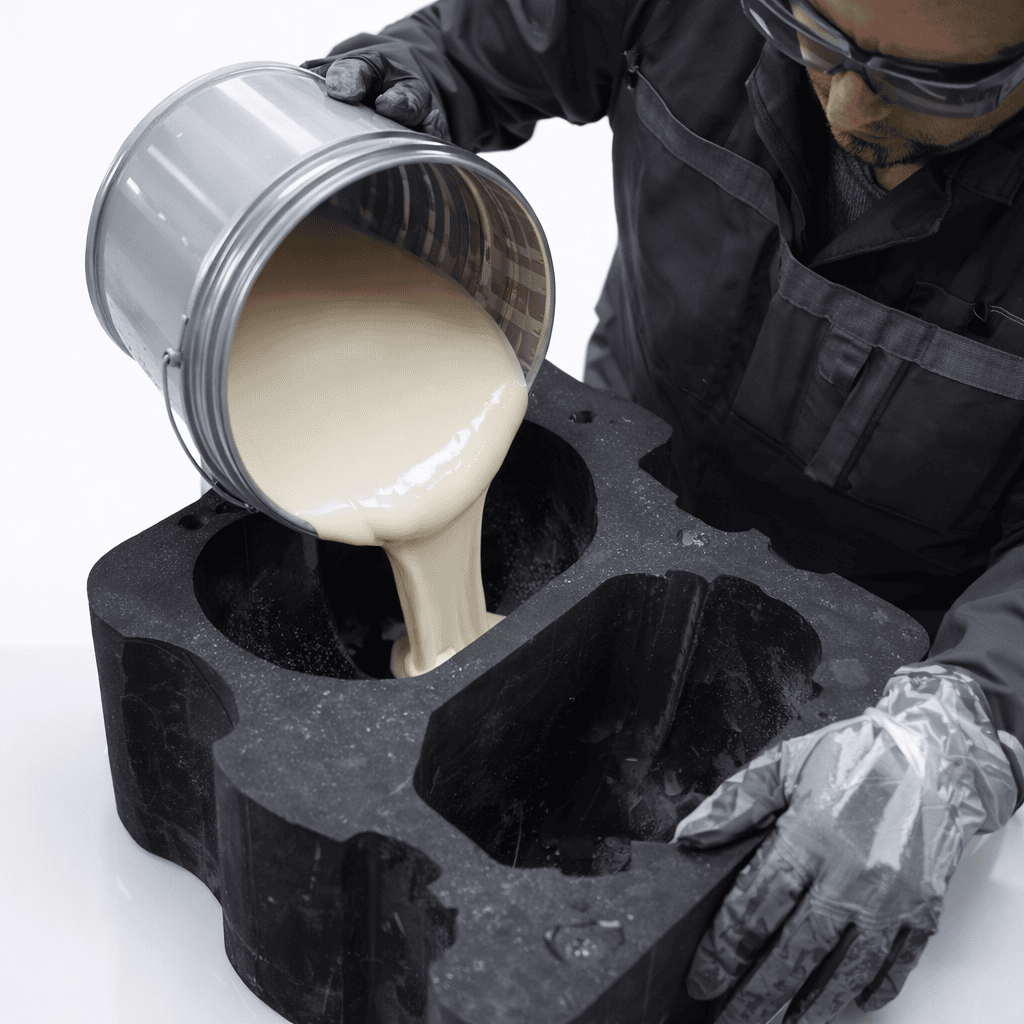 Pesa con precisione il componente A, aggiungi il componente B secondo il rapporto indicato, quindi miscela subito fino a ottenere un composto omogeneo. Una miscelazione errata può alterare l’espansione e la densità finale.